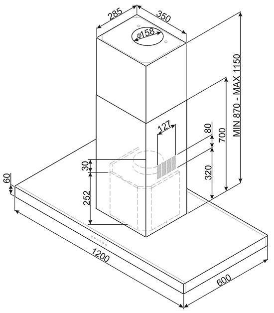 – เครื่องดูดควันกลางห้อง Island Hood ที่มีความกว้าง 120 ซม.