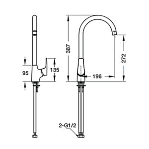 • ก๊อกผสมสำหรับอ่างล้างจาน ติดตั้งเคาน์เตอร์