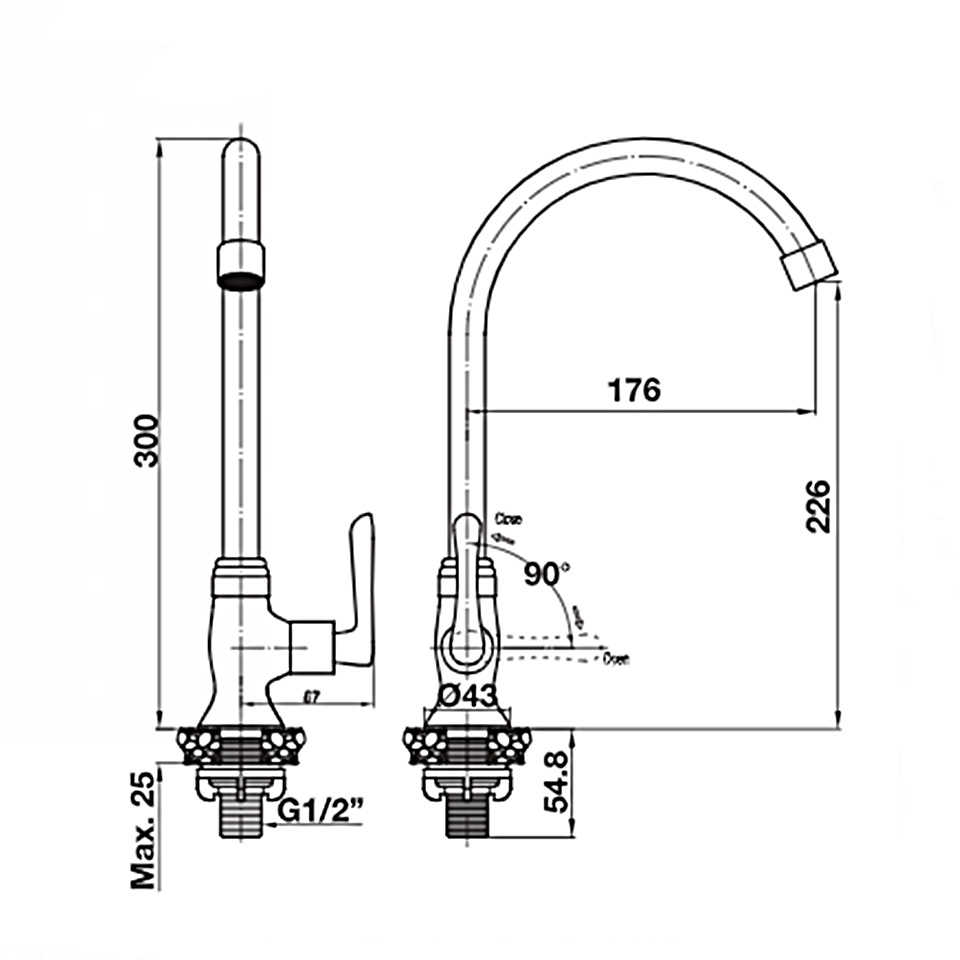 • ก๊อกน้ำเย็นสำหรับอ่างล้างจาน ติดตั้งเคาน์เตอร์