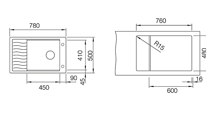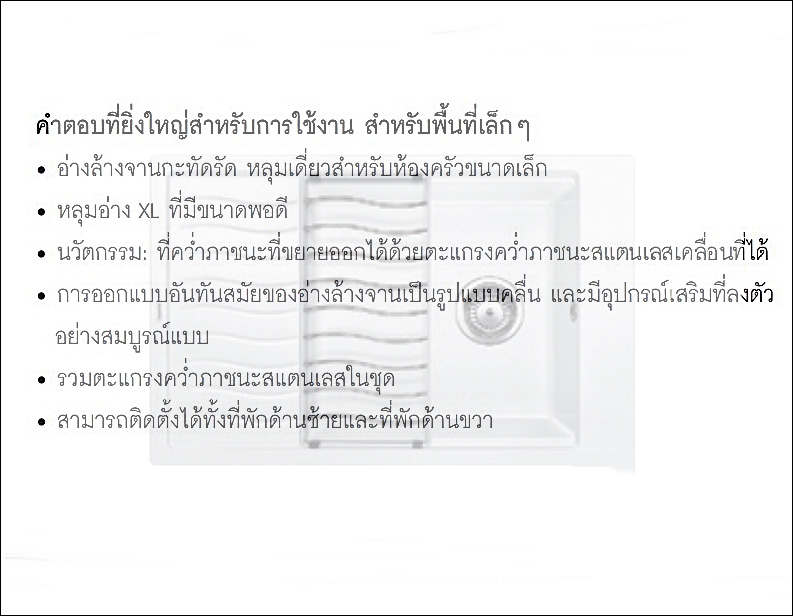 • ความลึกของหลุมอ่าง 190 มม.