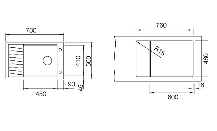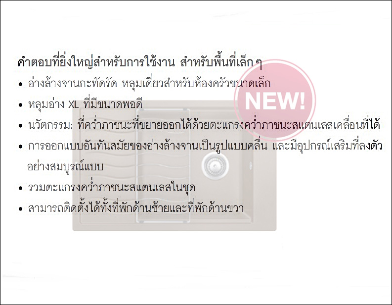 • ความลึกของหลุมอ่าง 190 มม.