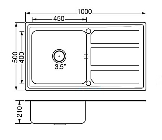 • ความลึกอ่างล้างจาน 210 มม.
