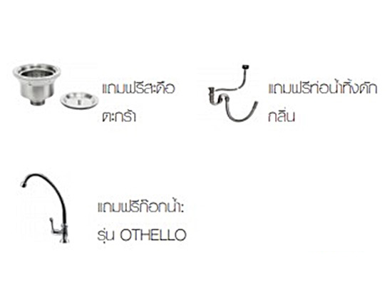 แถมฟรี: ก๊อกน้ำเย็นรุ่น Othello,ท่อน้ำทิ้งดักกลิ่น, สะดือตะกร้า