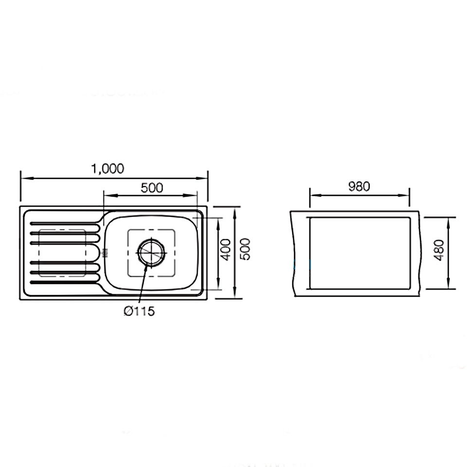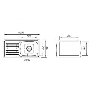 • ขนาดติดตั้ง 980 x 480 มม.