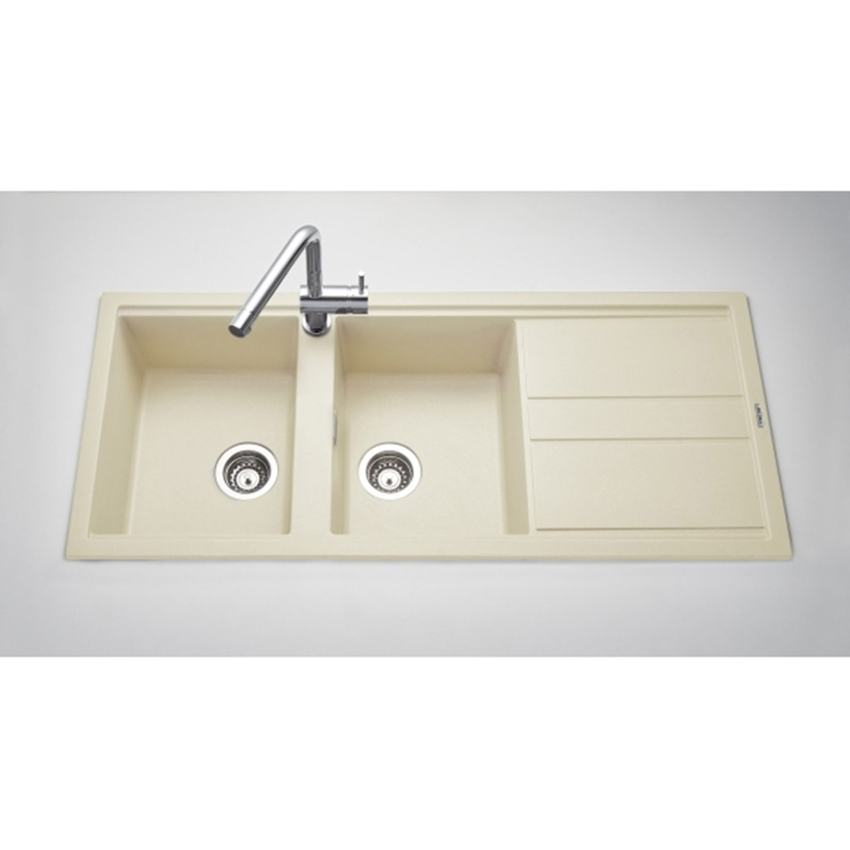 • อ่างล้างจานชนิด 2 หลุม 1 ที่พัก เนื้อแกรนิตสังเคราะห์สีครีม