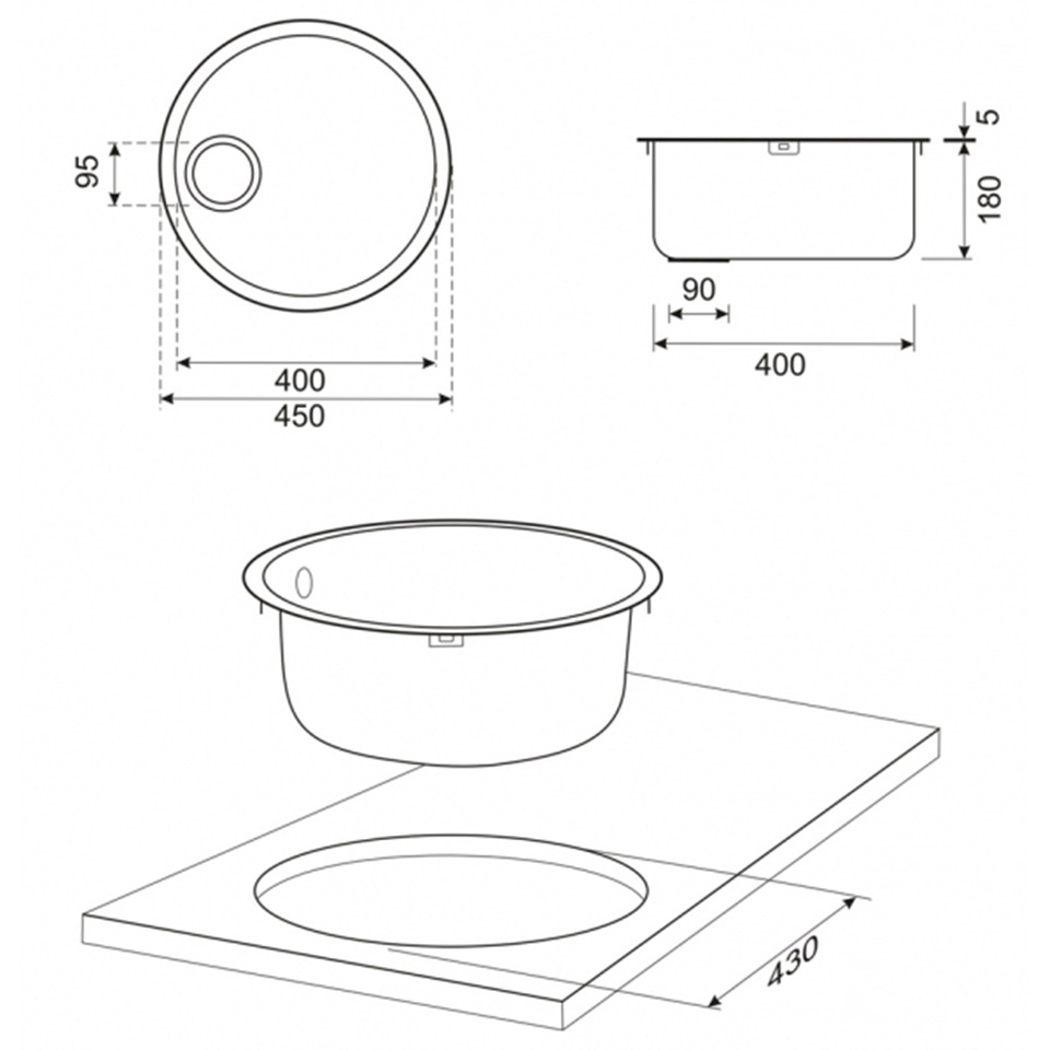 • ขนาดอ่าง 45 ซม. หนา 0.8 มม.