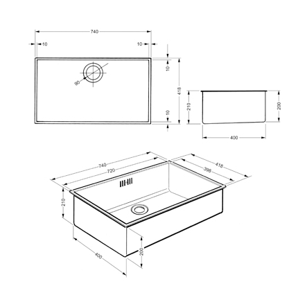 ● อ่างสเตนเลส สตีล AISI304 ความหนา 1 มม. ชนิดติดตั้งใต้ท็อปเฟอร์นิเจอร์