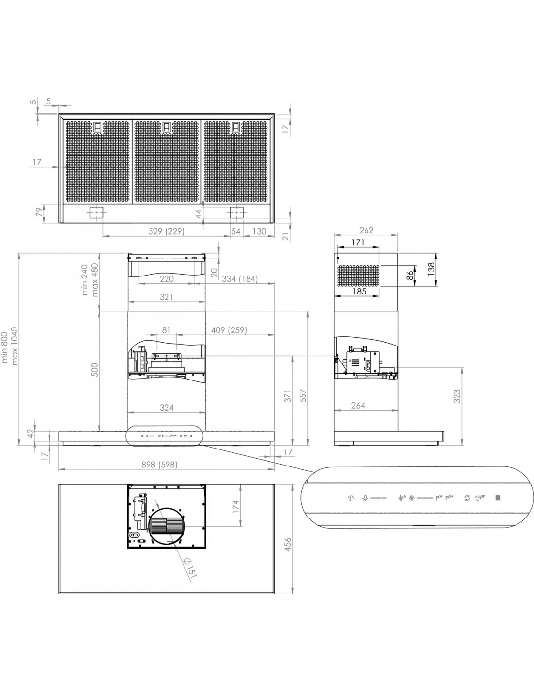 - เครื่องดูดควันติดผนัง 90 ซม.