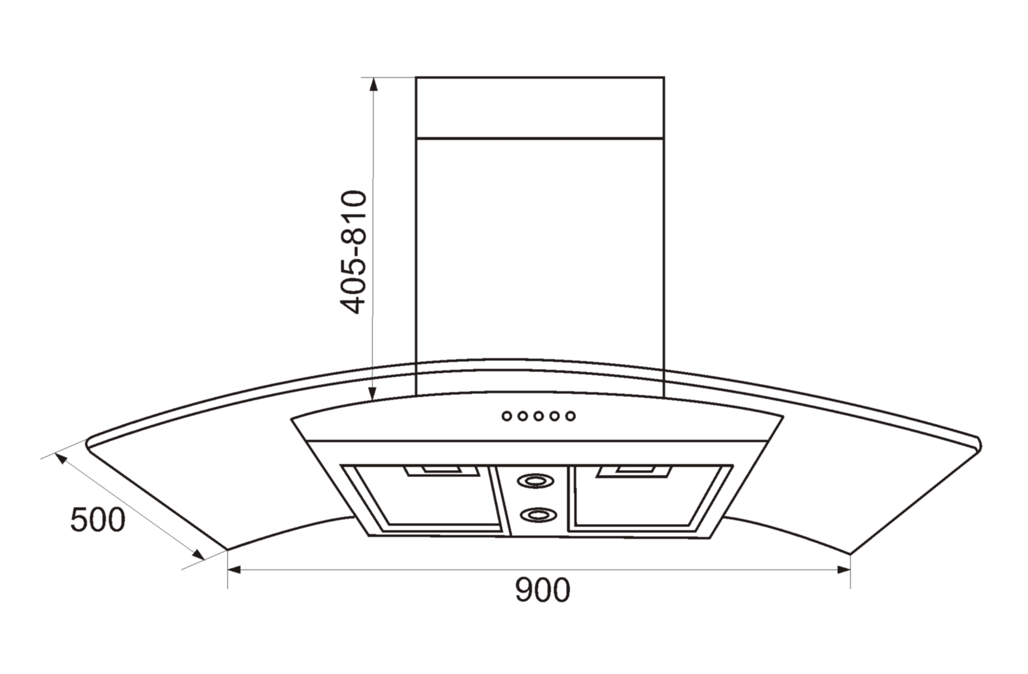 เครื่องดูดควันแบบติดผนังขนาด 90 เซ็นติเมตร โครงสร้างสเตนเลส หลอดไฟ LED 2 ดวง ควบคุมด้วยปุ่มกด ฟิลเตอร์วัสดุอลูมิเนียมมอเตอร์ดูดอากาศ 1 ตัว ใบพัดโลหะ กำลังดูดอากาศ 1,200 ลูกบาศก์เมตร/ชั่วโมง ท่อระบายอากาศขนาด 6 นิ้ว สามารถปรับระดับการทำงานได้ 3 ระดับ