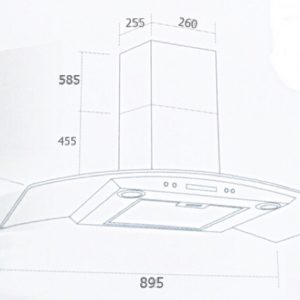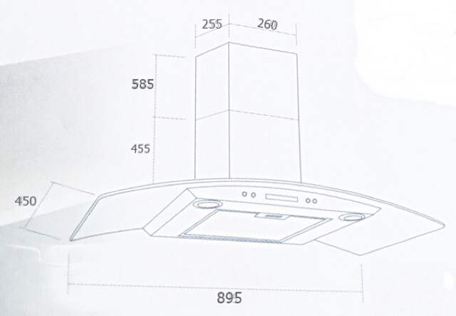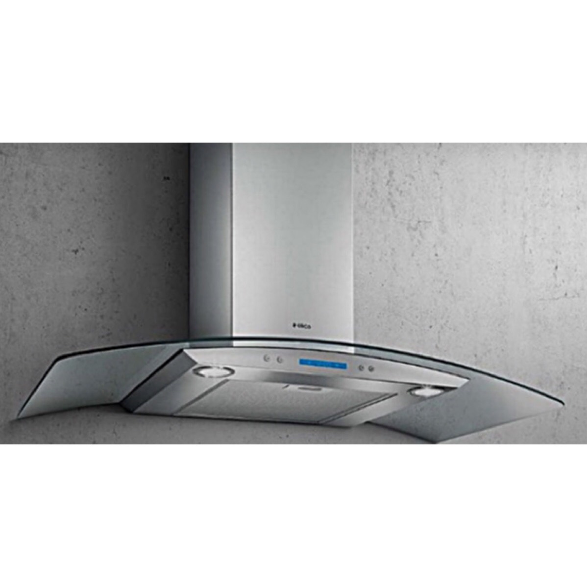 • เครื่องดูดควันแบบติดผนัง โครงสร้างสเตนเลสและกระจกนิรภัยแบบโค้ง