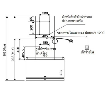 - ขนาด 938-1355 มม. (H) 900 มม. (W) 395 มม. (D)