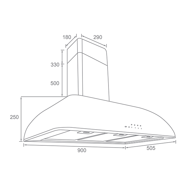 - เครื่องดูดควันแบบติดผนัง ทรงกระโจม ขนาด 90 ซม