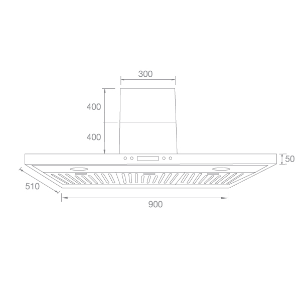– เครื่องดูดควันแบบติดผนัง ขนาด 90 ซม. (500x900x859 มม.)