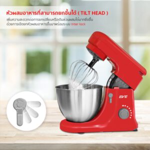 - ตัวเครื่องสามารถยกหัว (Tilt-Head) เพื่อความสะดวกในการเปลี่ยนอุปกรณ์หรือผสมอาหาร