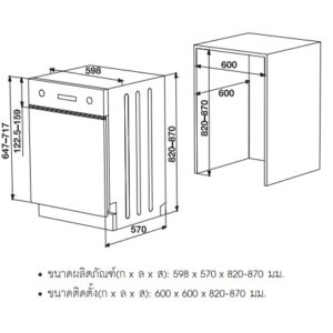 - ขนาดติดตั้ง(กxยxส): 600 x 600 x 820-870 มม.