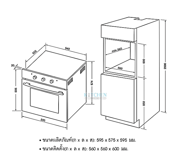 - ขนาด (กxยxส): 595 x 575 x 595 มม.